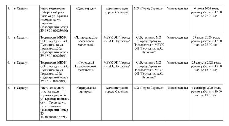 В дни проведения массовых праздничных, общественно-политических, культурно-массовых, спортивно-массовых мероприятий, проводимых на территории МО «Город Сарапул» |
