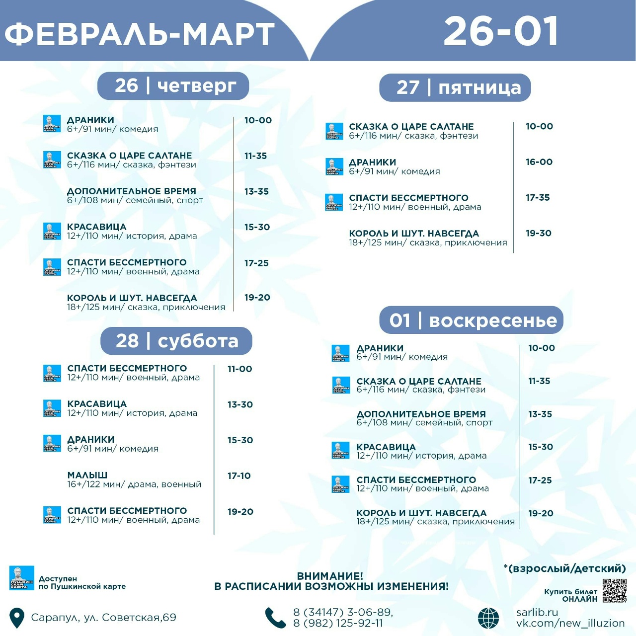 23,24,25,27,28 февраля, 1 марта 11:00, 14:00 |