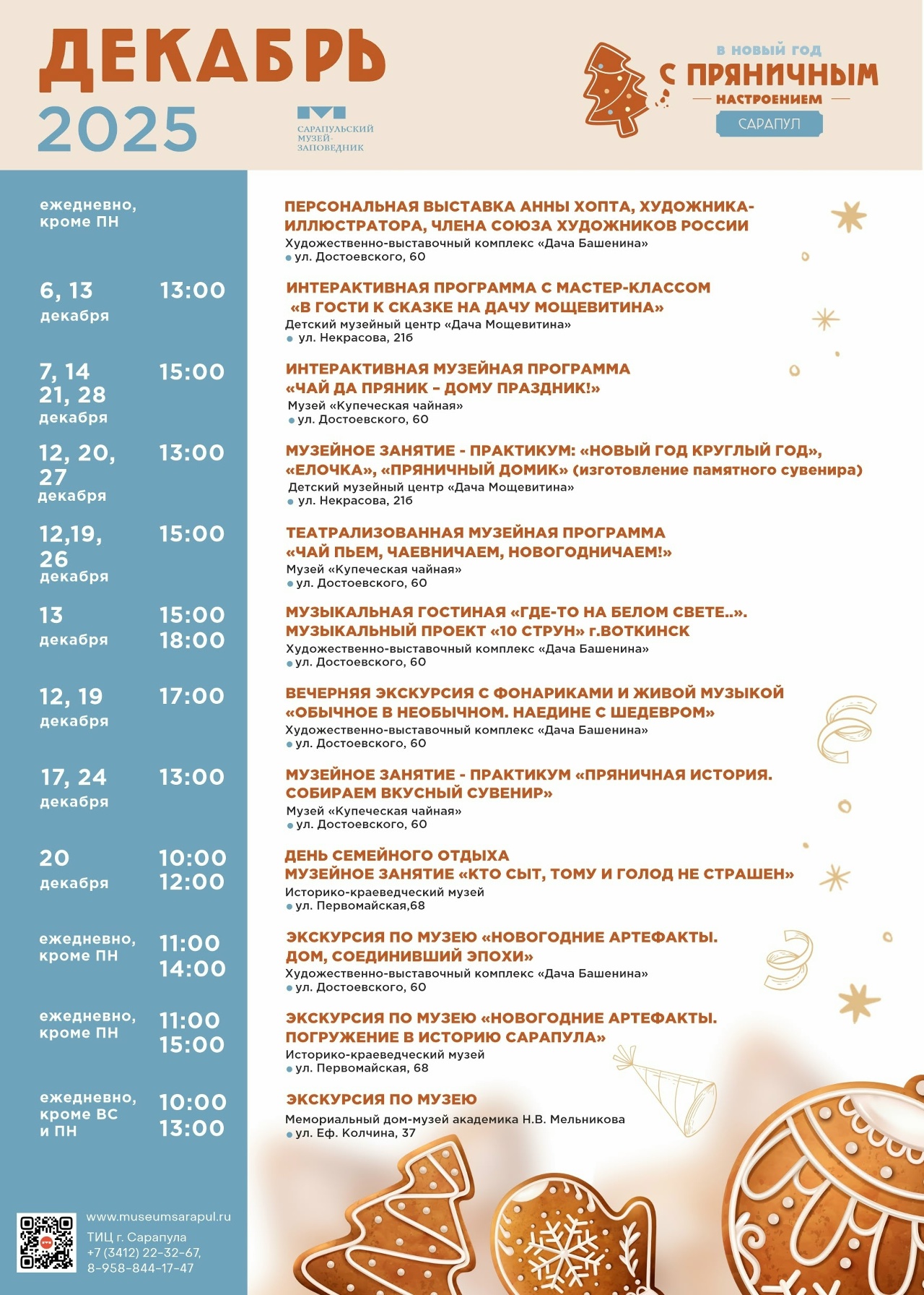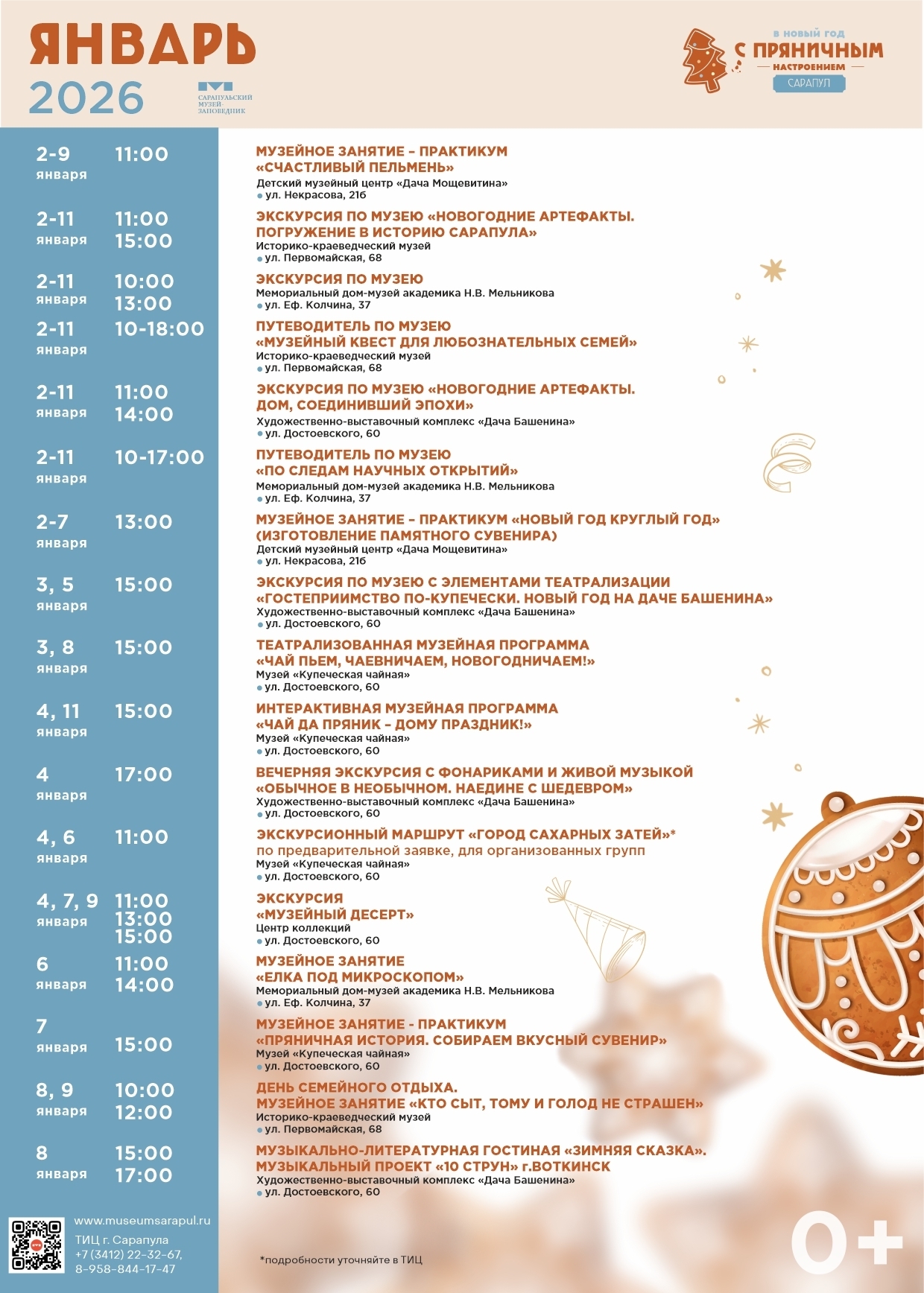30 декабря, 2,3,4,5,6,7,8,9,10,11 января 11:00, 14:00 |