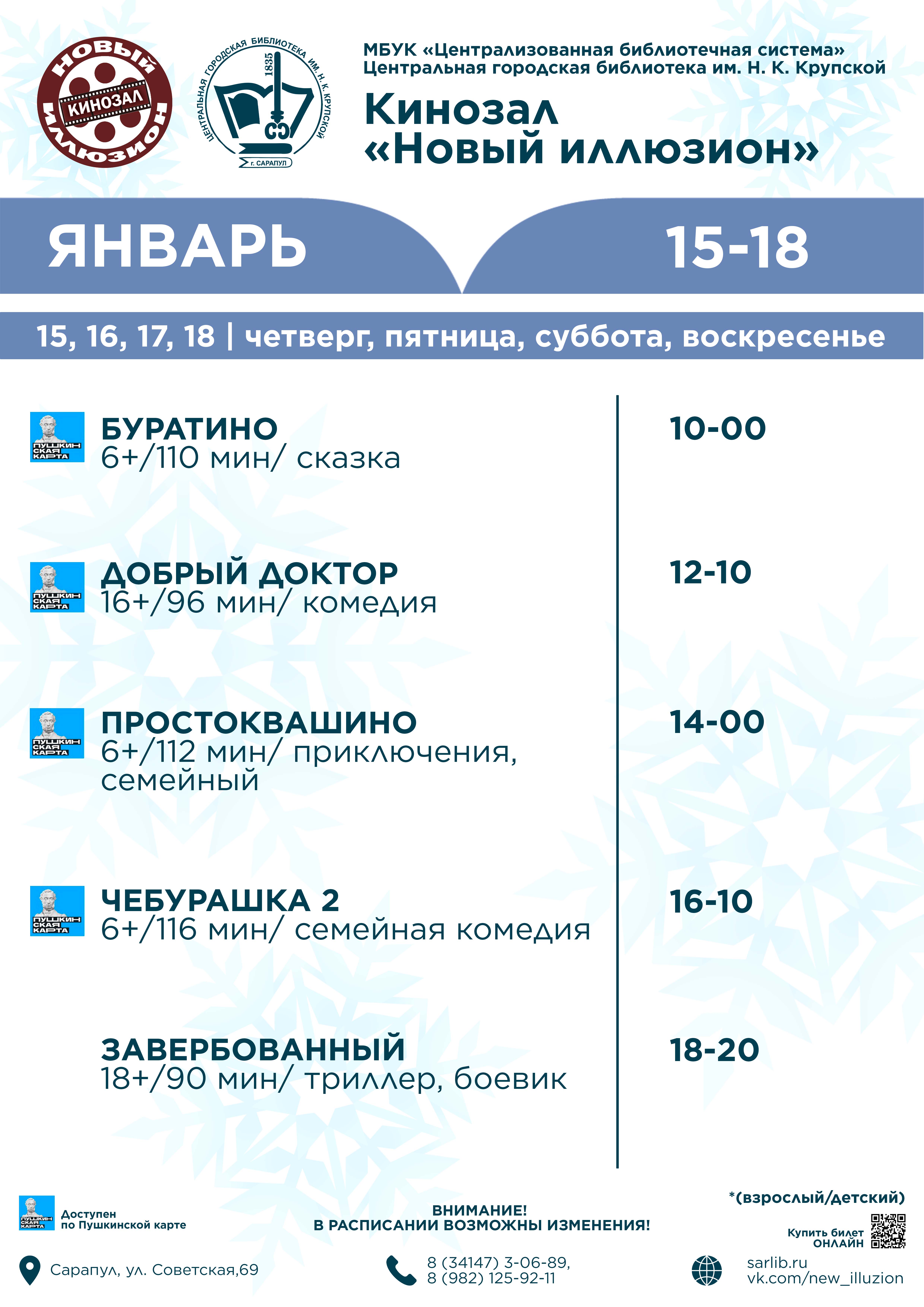 12,13,14,15,16,17,18 января 11:00, 15:00 |