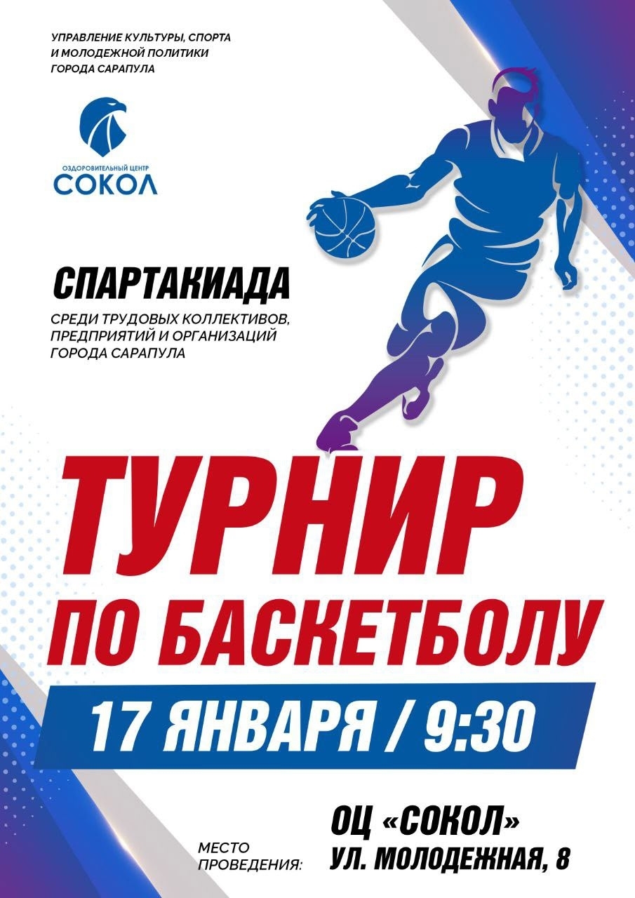 | Баскетбольный турнир городской спартакиады трудовых коллективов | Спортзал оздоровительного центра «Сокол» |