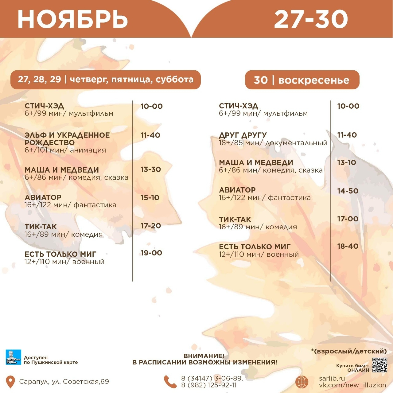 25,26,28,29,30 ноября 11:00, 14:00 |