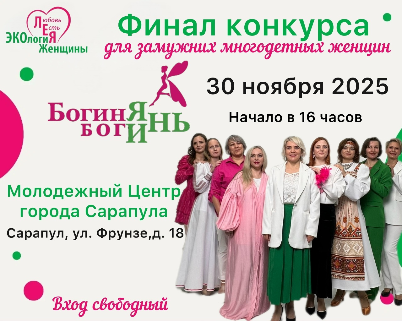 | Первая благотворительная премия и конкурс «Богиня богинь» для замужних многодетных женщин Сарапула и Сарапульского района | Молодежный центр |