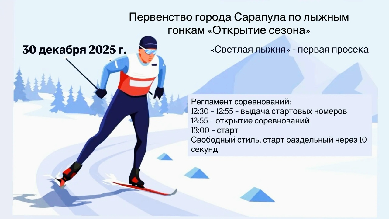 | Первенство города по лыжным гонкам «Открытие лыжного сезона» | Трасса «Светлая лыжня» спортивно-оздоровительного комплекса «Энергия» |