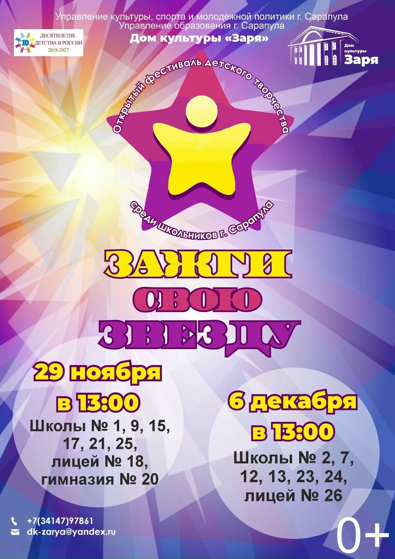 | Открытый фестиваль детского творчества «Зажги свою звезду» | Дом культуры «Заря» |