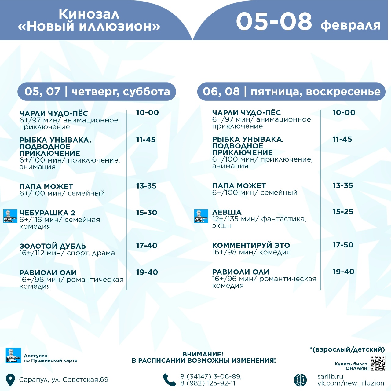 3,4,5 февраля 10:00, 13:00 6,7 февраля 10:00 |