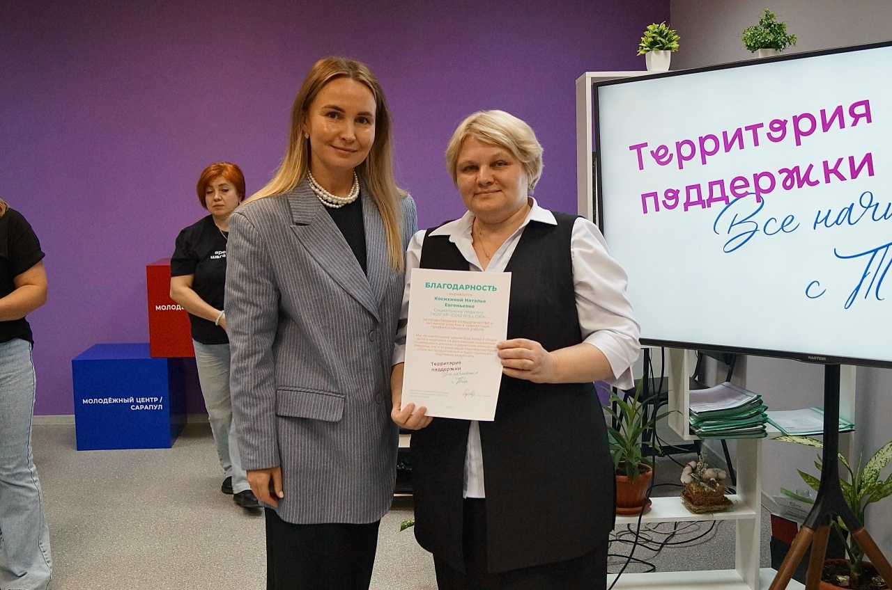 Новое пространство «Территория поддержки» открыли в Сарапуле. В отремонтированном помещении муниципального учреждения «Молодежный центр» специалисты по социальной работе планируют проведение мастер-классов, создание объединений, уютные встречи с друзьями и профессиональную поддержку.