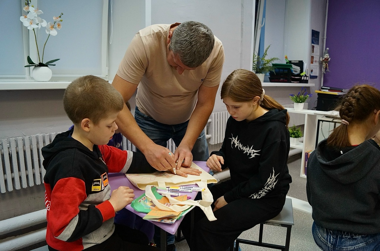 Продолжением события стало творческое занятие «Моя любимая семья» по раскрашиванию сумки и уютное чаепитие в новом семейном пространстве.